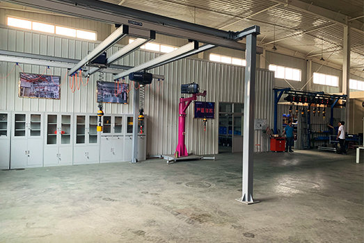 Ai智能提升机+钢轨+铝合金主轨 客户需求:吊运电机驱动到工装进行检测及上下料。 丹巴顿了解客户需求后对客户现场进行了考察测量,并做出了解决方案,由于客户现场部分区域有障